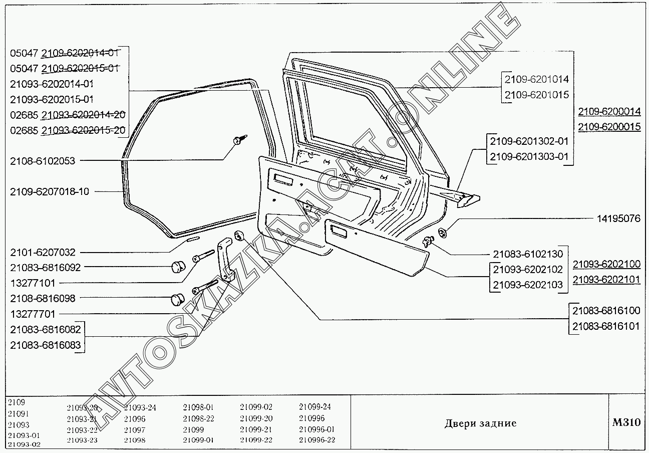 1 - для автомобилей ВАЗ-2109, 21093, 21099 и их модификаций