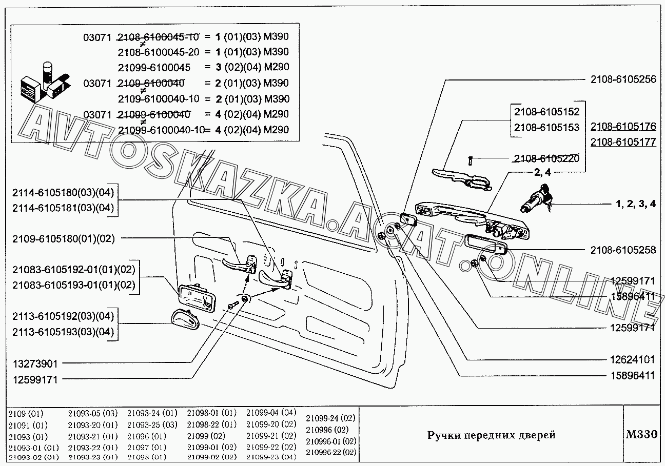 1 - для автомобилей ВАЗ-2109, 21093, 21099 и их модификаций