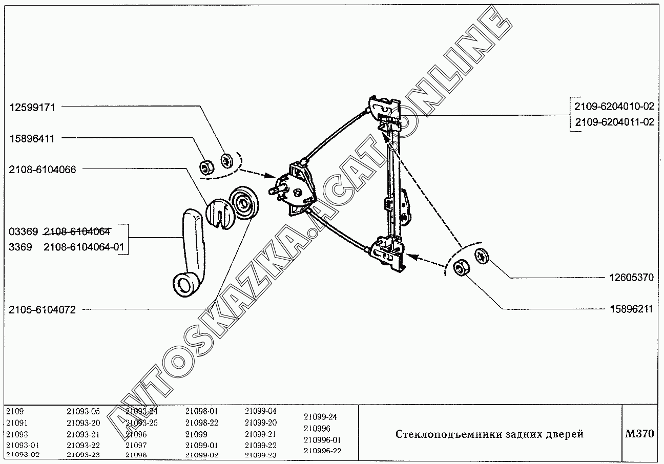 Стеклоподъемники задних дверей ВАЗ 2109 (2109, 21091, 21093, 21093-01, 21093-02, 21093-05, 21096, 21097, 21098, 21098-01 (карб.), 21093-20, 21093-21, 21093-22, 21093-23, 21093-24, 21093-25, 21098-22 (впрыск))
