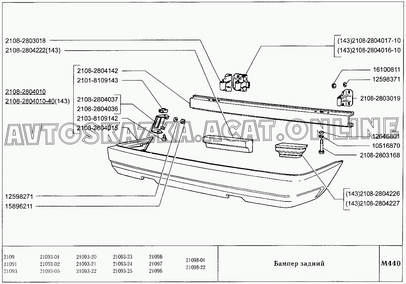 Бампер задний ВАЗ 2109 (2109, 21091, 21093, 21093-01, 21093-02, 21093-05, 21096, 21097, 21098, 21098-01 (карб.), 21093-20, 21093-21, 21093-22, 21093-23, 21093-24, 21093-25, 21098-22 (впрыск))