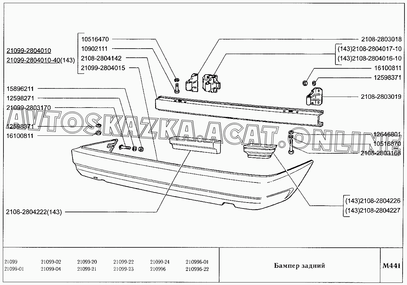Бампер задний ВАЗ 2109 (2109, 21091, 21093, 21093-01, 21093-02, 21093-05, 21096, 21097, 21098, 21098-01 (карб.), 21093-20, 21093-21, 21093-22, 21093-23, 21093-24, 21093-25, 21098-22 (впрыск))