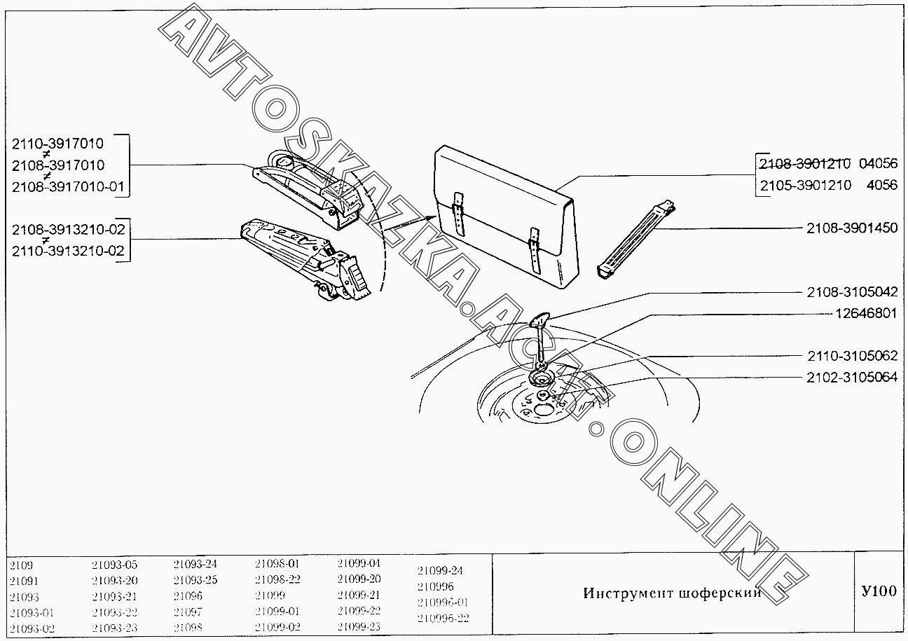 Инструмент шоферский ВАЗ 2109 (2109, 21091, 21093, 21093-01, 21093-02, 21093-05, 21096, 21097, 21098, 21098-01 (карб.), 21093-20, 21093-21, 21093-22, 21093-23, 21093-24, 21093-25, 21098-22 (впрыск))