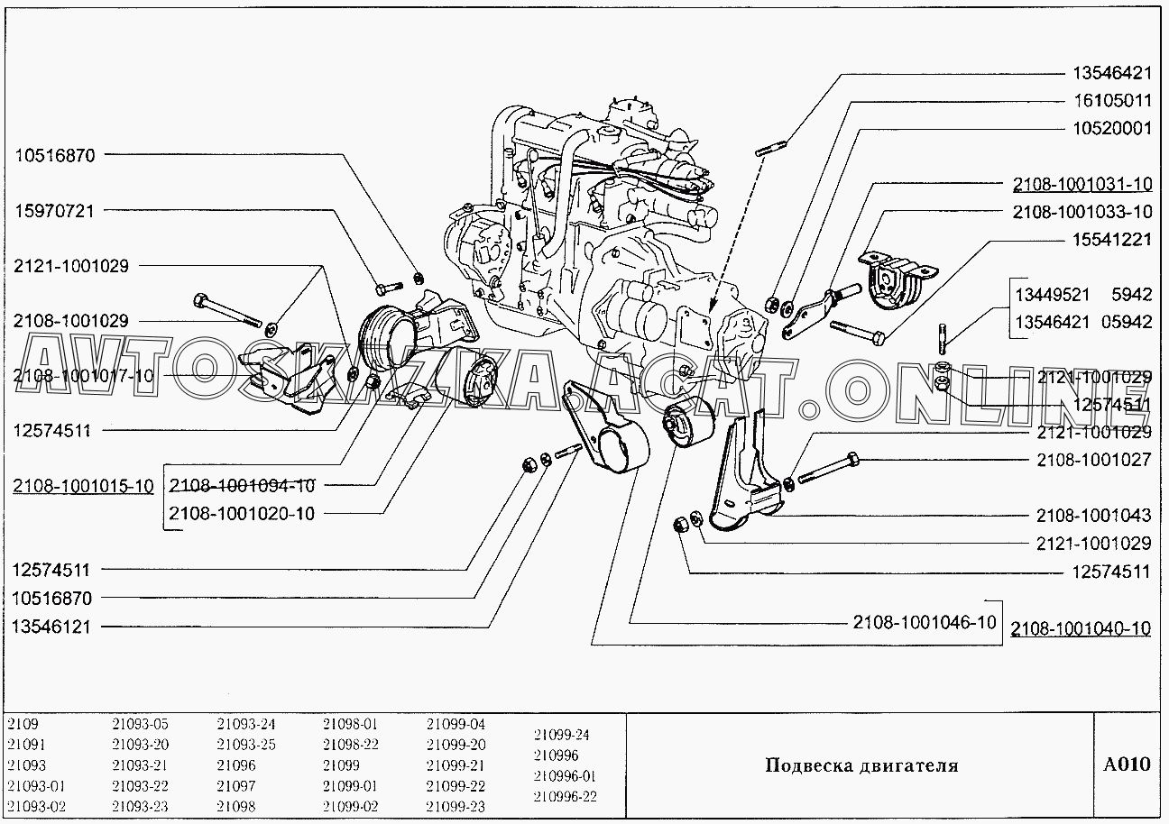 Подвеска двигателя ВАЗ 21099 (21099, 21099-01, 21099-02, 21099-04, 210996, 210996-01 (карб.), 21099-20, 21099-21, 21099-22, 21099-23, 21099-24, 210996-22 (впрыск))