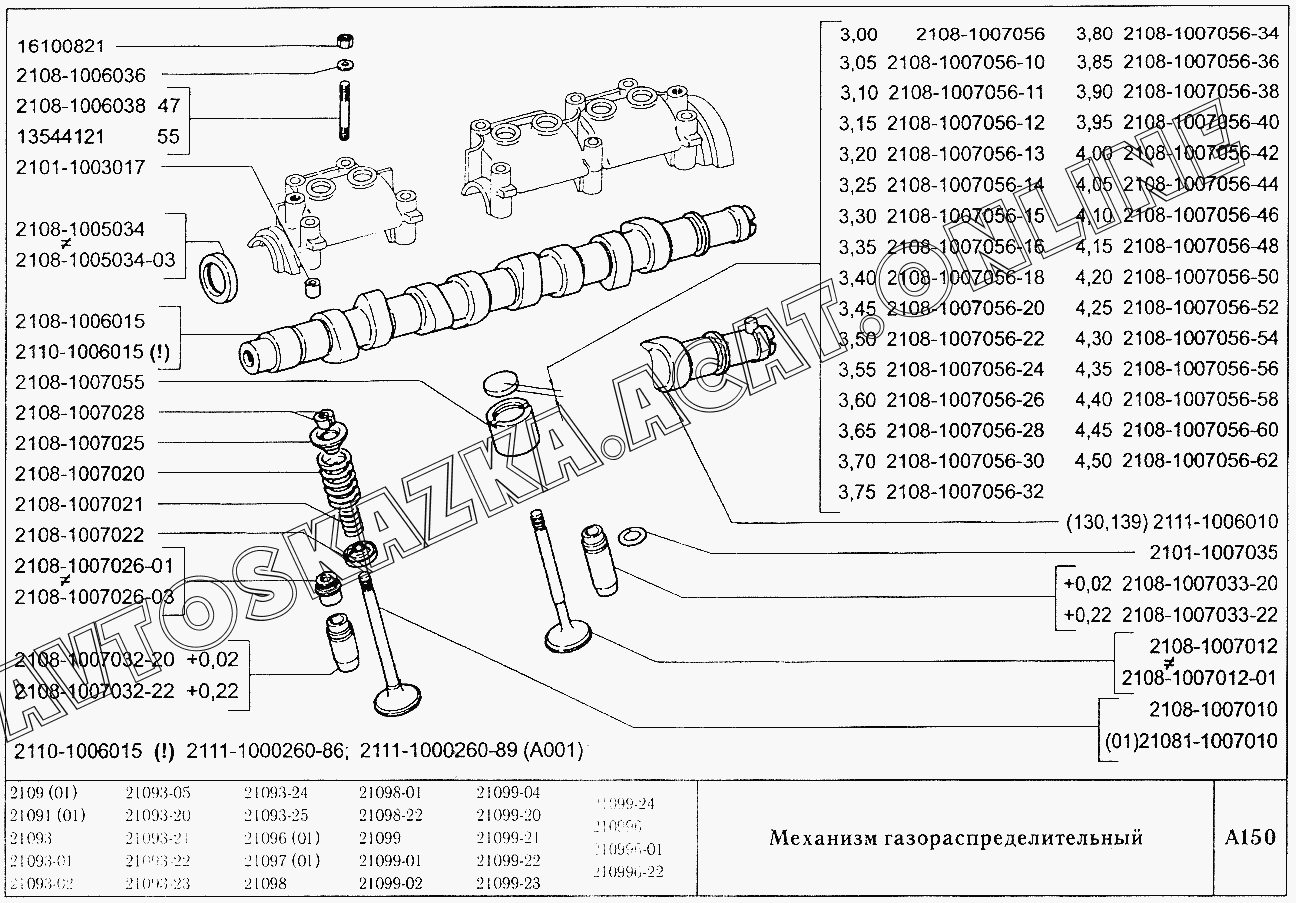 Механизм газораспределительный ВАЗ 21099 (21099, 21099-01, 21099-02, 21099-04, 210996, 210996-01 (карб.), 21099-20, 21099-21, 21099-22, 21099-23, 21099-24, 210996-22 (впрыск))