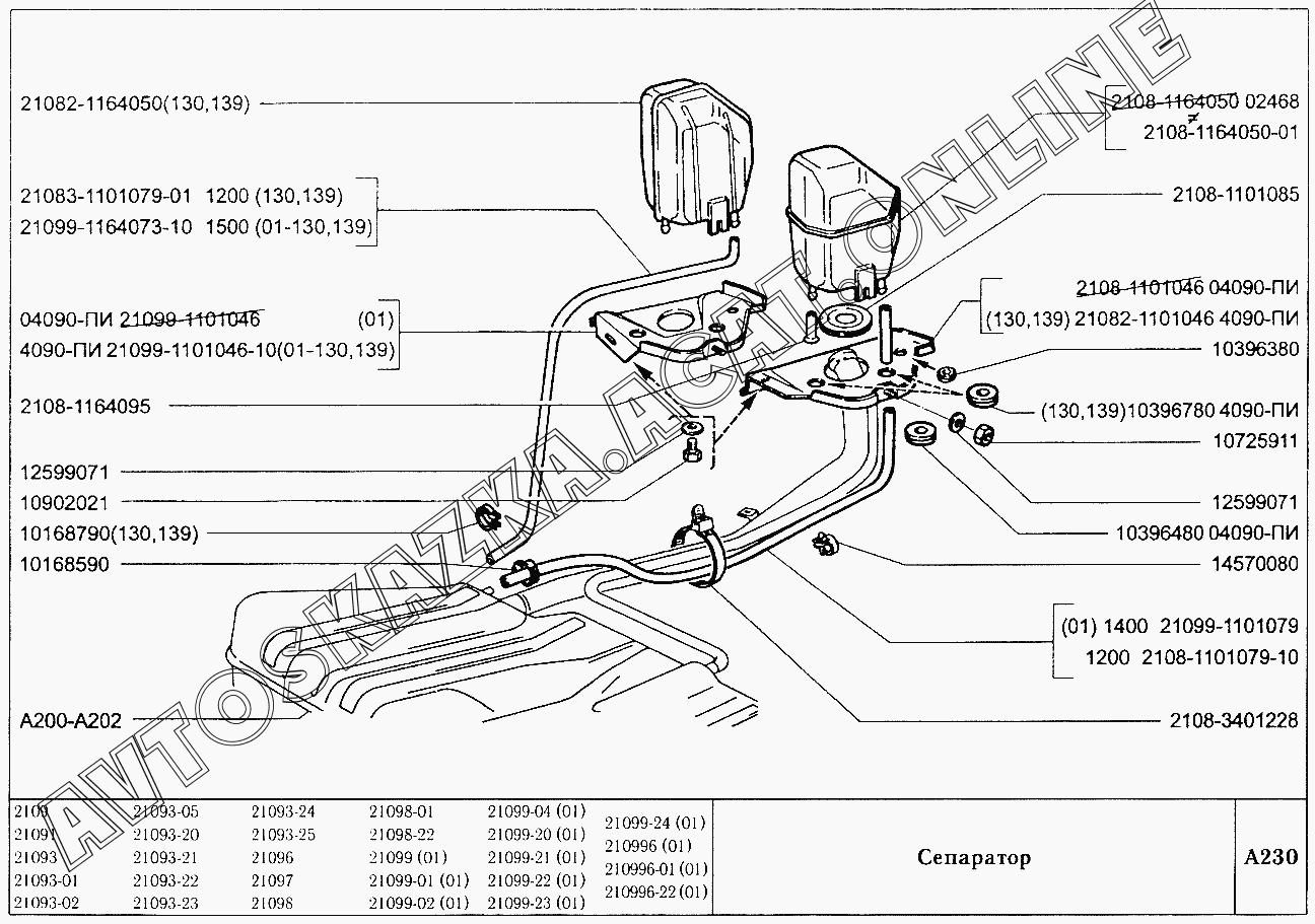 Сепаратор ВАЗ 21099 (21099, 21099-01, 21099-02, 21099-04, 210996, 210996-01 (карб.), 21099-20, 21099-21, 21099-22, 21099-23, 21099-24, 210996-22 (впрыск))