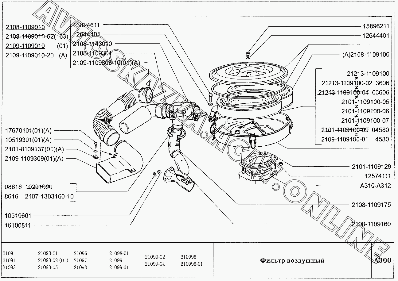 Фильтр воздушный ВАЗ 21099 (21099, 21099-01, 21099-02, 21099-04, 210996, 210996-01 (карб.), 21099-20, 21099-21, 21099-22, 21099-23, 21099-24, 210996-22 (впрыск))