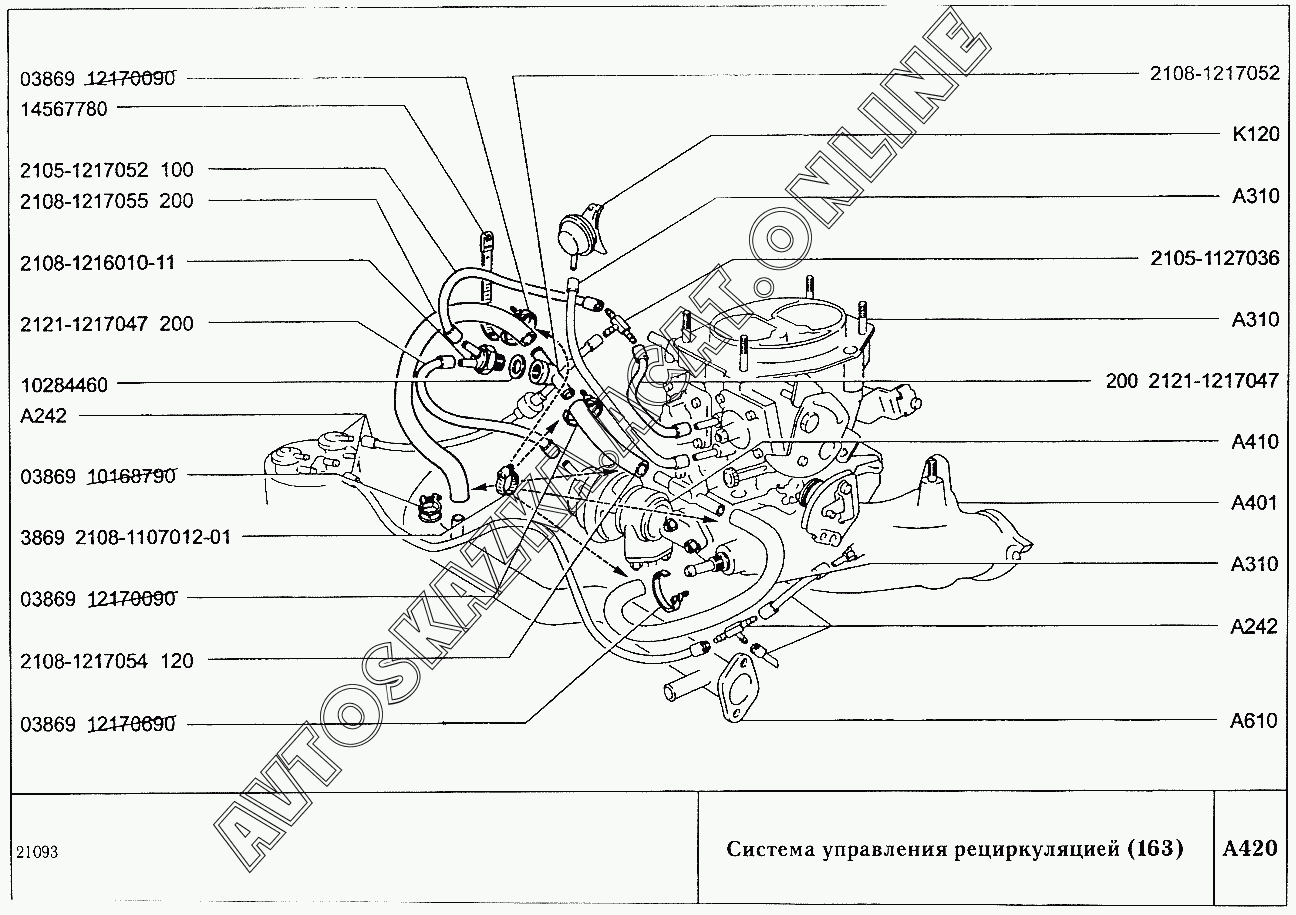 Система управления рециркуляцией (163) ВАЗ 21099 (21099, 21099-01, 21099-02, 21099-04, 210996, 210996-01 (карб.), 21099-20, 21099-21, 21099-22, 21099-23, 21099-24, 210996-22 (впрыск))