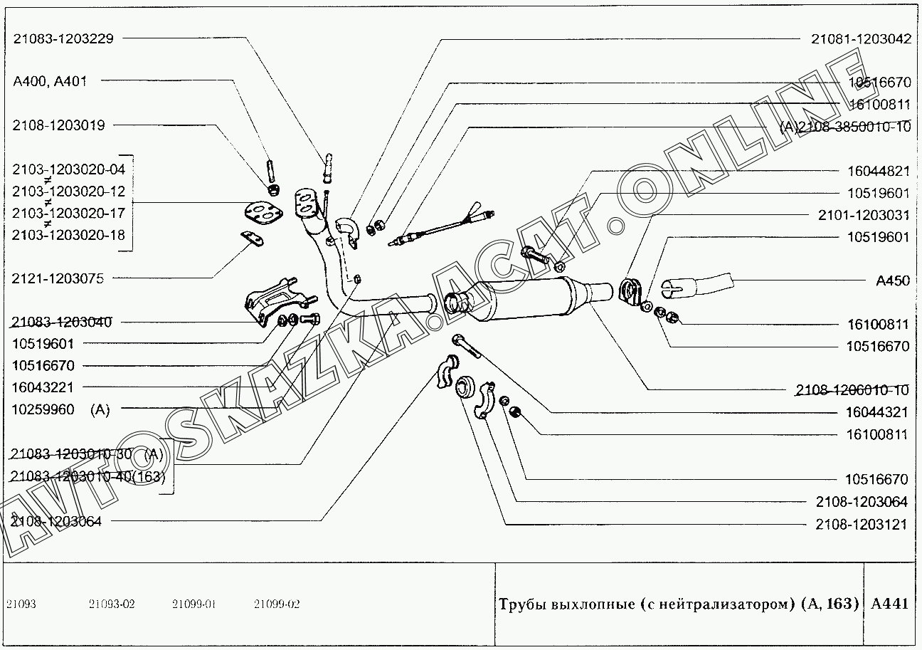 Трубы выхлопные (с нейтрализатором) (А,163) ВАЗ 21099 (21099, 21099-01, 21099-02, 21099-04, 210996, 210996-01 (карб.), 21099-20, 21099-21, 21099-22, 21099-23, 21099-24, 210996-22 (впрыск))