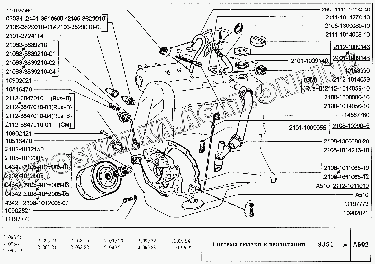 Система смазки и вентиляции ВАЗ 21099 (21099, 21099-01, 21099-02, 21099-04, 210996, 210996-01 (карб.), 21099-20, 21099-21, 21099-22, 21099-23, 21099-24, 210996-22 (впрыск))