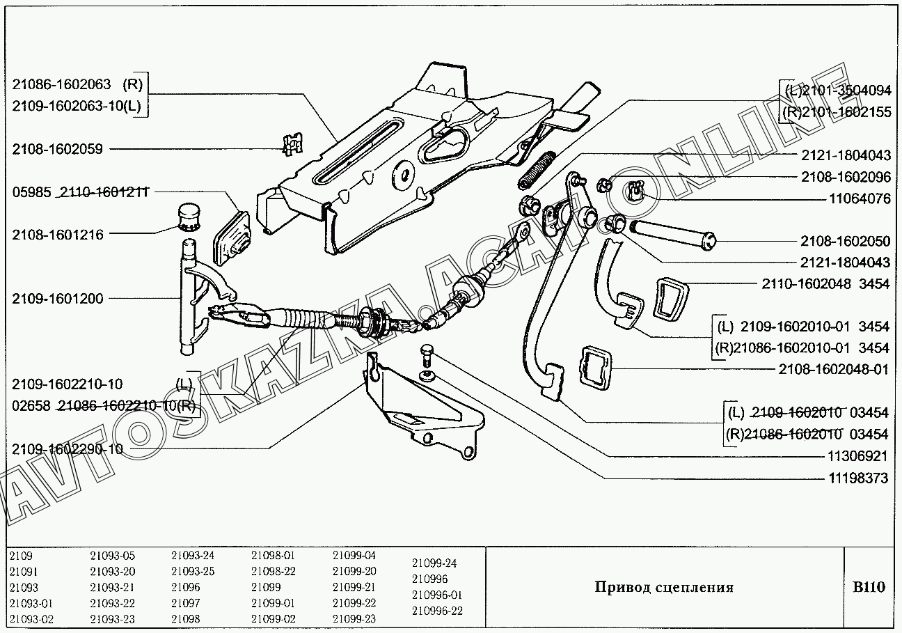 Привод сцепления ВАЗ 21099 (21099, 21099-01, 21099-02, 21099-04, 210996, 210996-01 (карб.), 21099-20, 21099-21, 21099-22, 21099-23, 21099-24, 210996-22 (впрыск))