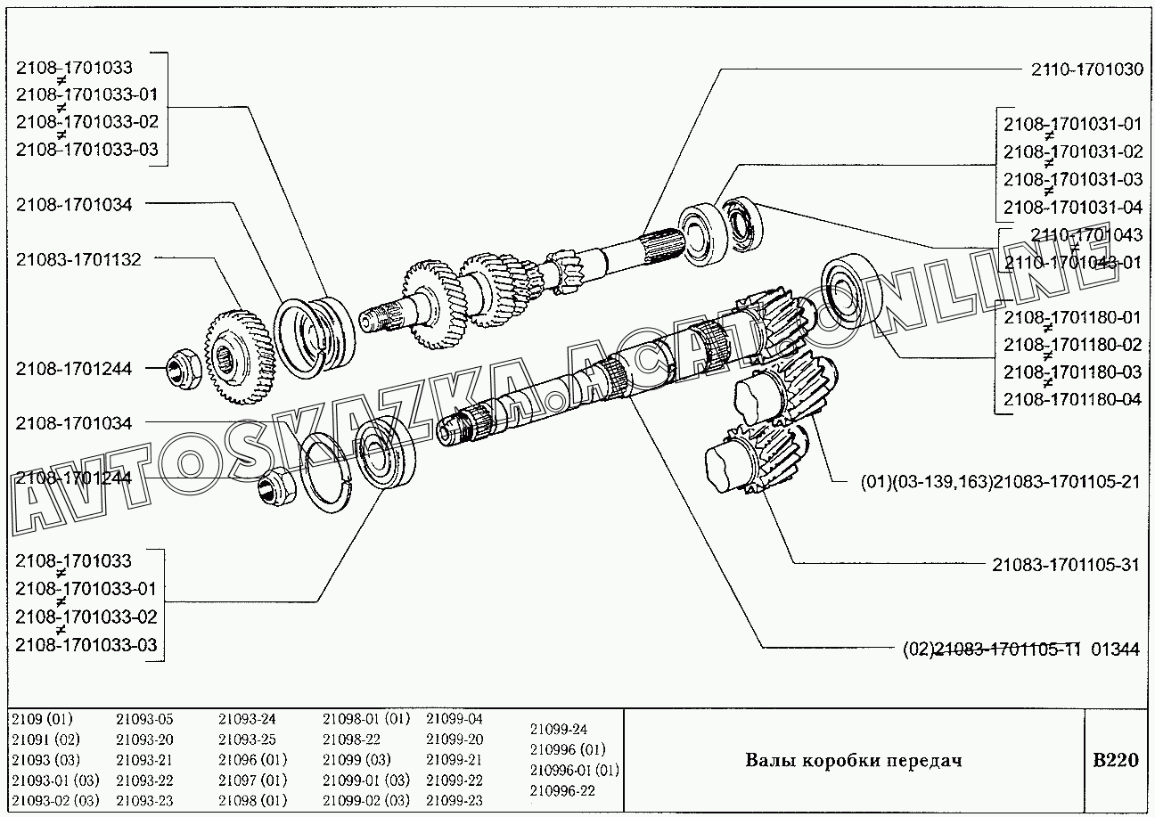 Валы коробки передач ВАЗ 21099 (21099, 21099-01, 21099-02, 21099-04, 210996, 210996-01 (карб.), 21099-20, 21099-21, 21099-22, 21099-23, 21099-24, 210996-22 (впрыск))
