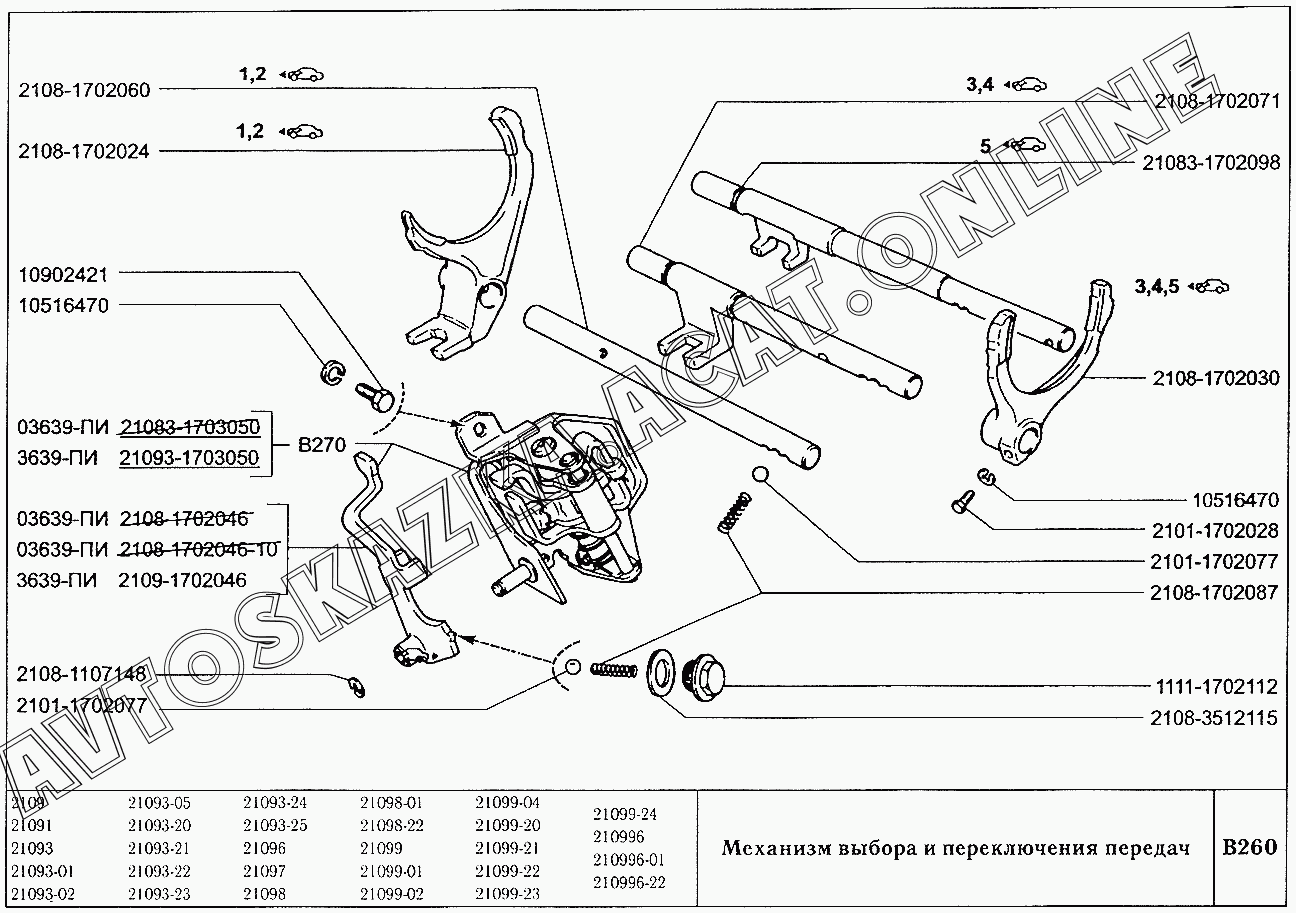 Механизм выбора и переключения передач ВАЗ 21099 (21099, 21099-01, 21099-02, 21099-04, 210996, 210996-01 (карб.), 21099-20, 21099-21, 21099-22, 21099-23, 21099-24, 210996-22 (впрыск))