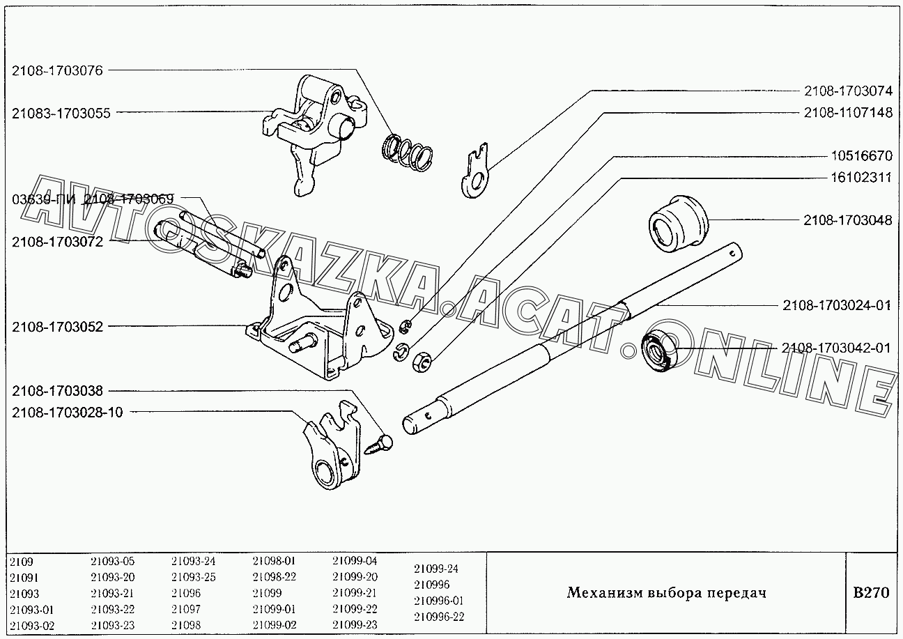 Механизм выбора передач ВАЗ 21099 (21099, 21099-01, 21099-02, 21099-04, 210996, 210996-01 (карб.), 21099-20, 21099-21, 21099-22, 21099-23, 21099-24, 210996-22 (впрыск))