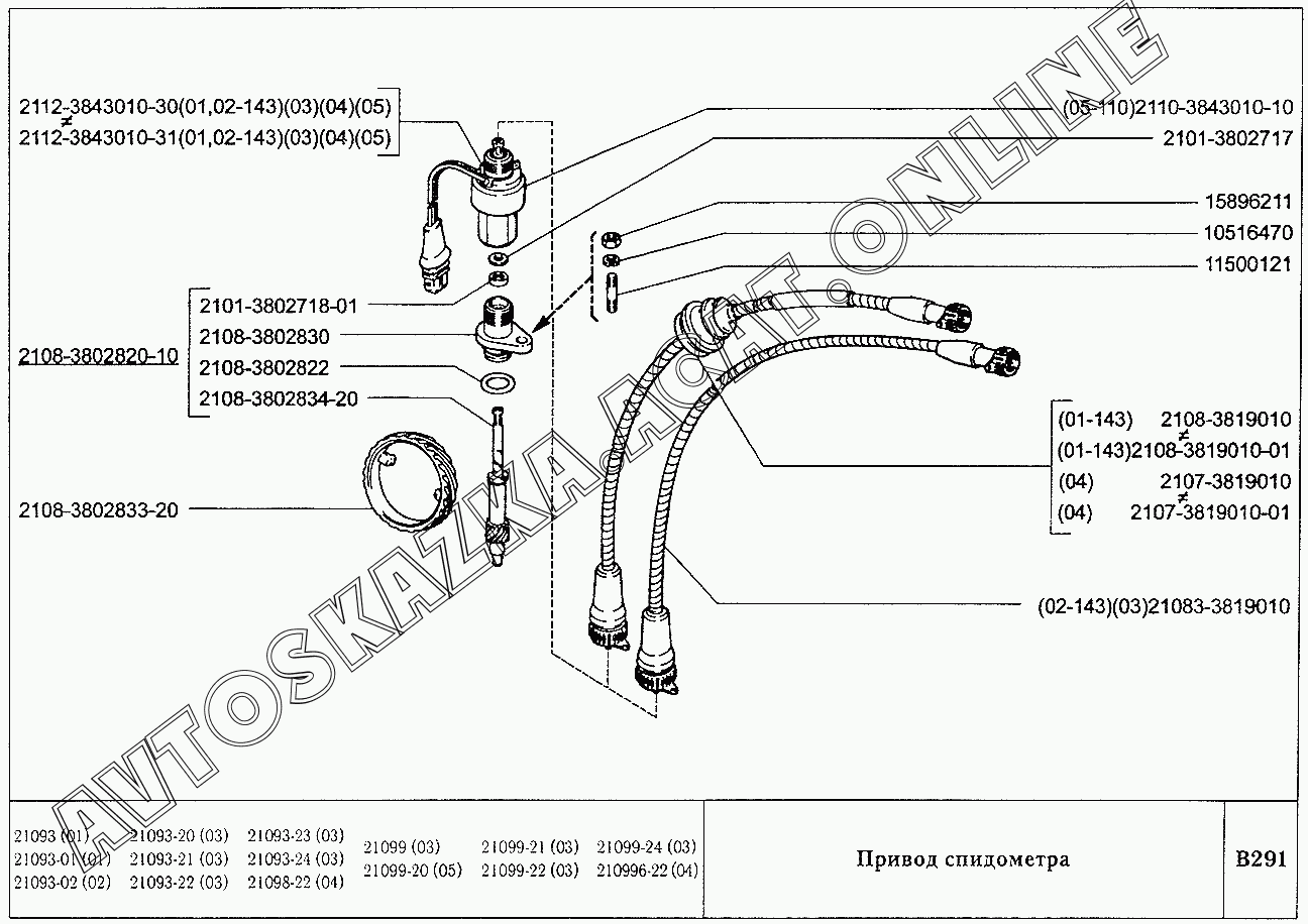 Привод спидометра ВАЗ 21099 (21099, 21099-01, 21099-02, 21099-04, 210996, 210996-01 (карб.), 21099-20, 21099-21, 21099-22, 21099-23, 21099-24, 210996-22 (впрыск))
