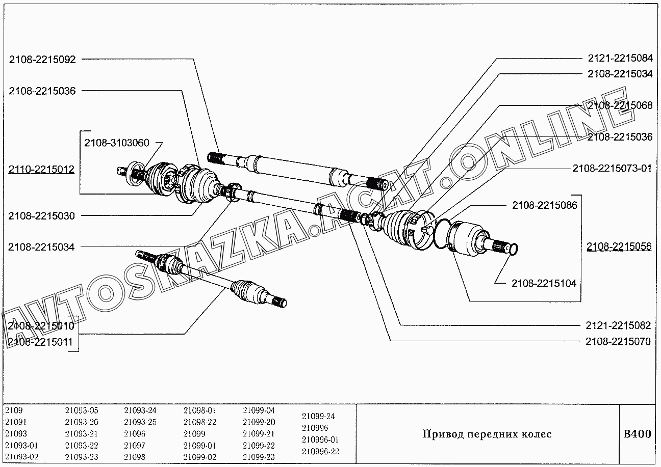 Привод передних колес ВАЗ 21099 (21099, 21099-01, 21099-02, 21099-04, 210996, 210996-01 (карб.), 21099-20, 21099-21, 21099-22, 21099-23, 21099-24, 210996-22 (впрыск))