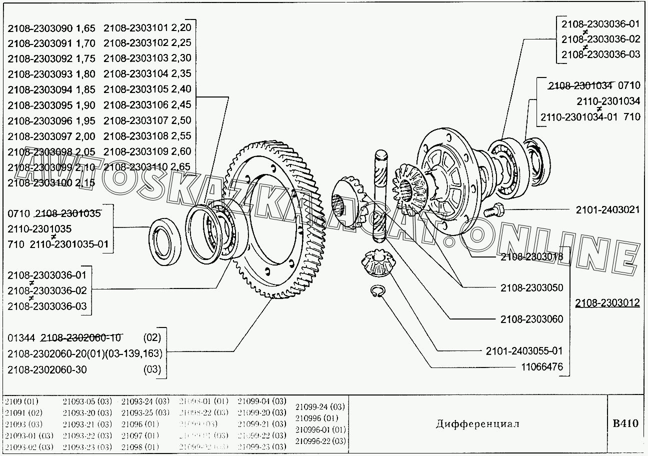 Дифференциал ВАЗ 21099 (21099, 21099-01, 21099-02, 21099-04, 210996, 210996-01 (карб.), 21099-20, 21099-21, 21099-22, 21099-23, 21099-24, 210996-22 (впрыск))