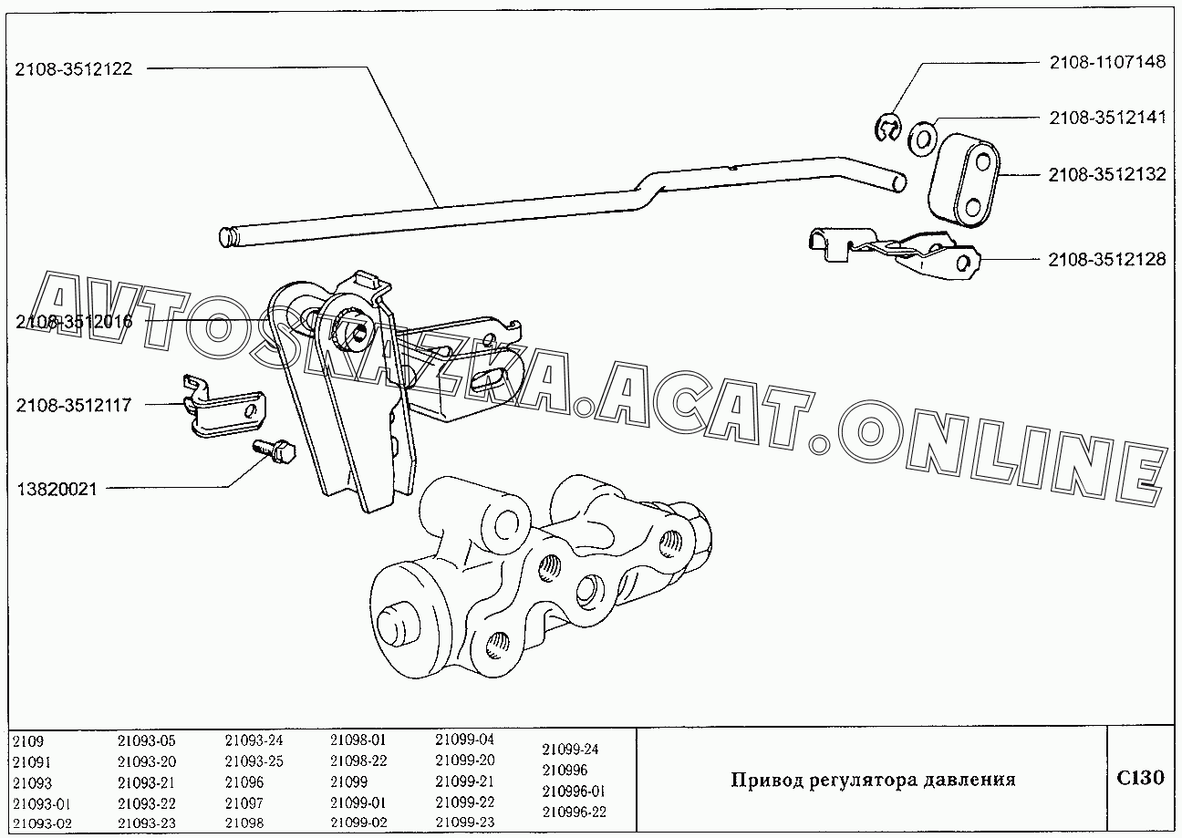 Привод регулятора давления ВАЗ 21099 (21099, 21099-01, 21099-02, 21099-04, 210996, 210996-01 (карб.), 21099-20, 21099-21, 21099-22, 21099-23, 21099-24, 210996-22 (впрыск))