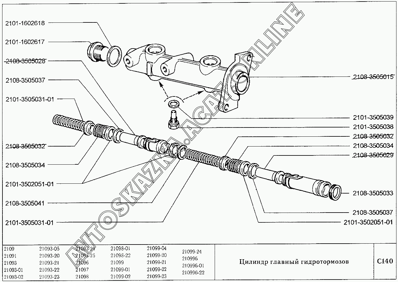 Цилиндр главный гидротормозов ВАЗ 21099 (21099, 21099-01, 21099-02, 21099-04, 210996, 210996-01 (карб.), 21099-20, 21099-21, 21099-22, 21099-23, 21099-24, 210996-22 (впрыск))