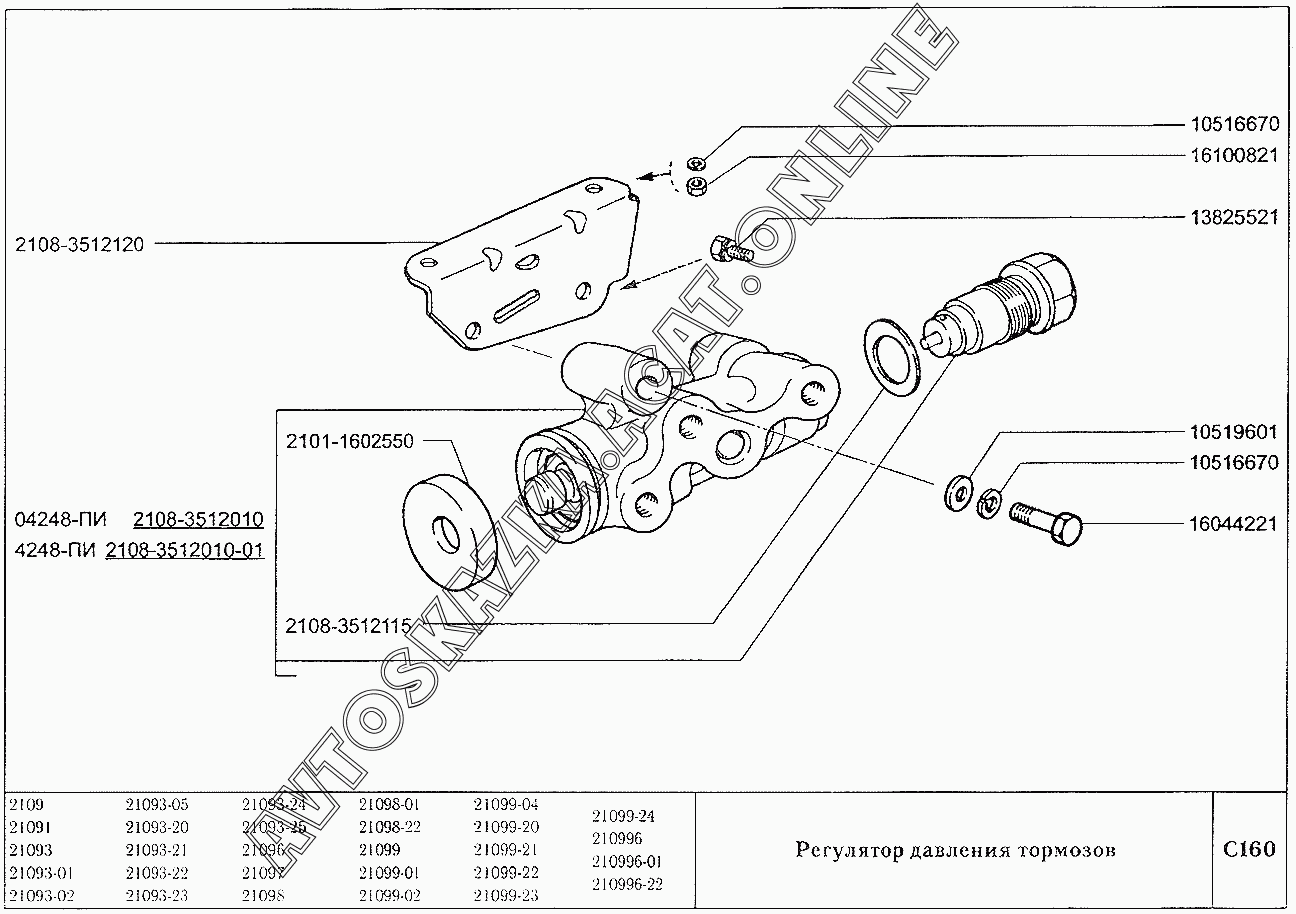 Регулятор давления тормозов ВАЗ 21099 (21099, 21099-01, 21099-02, 21099-04, 210996, 210996-01 (карб.), 21099-20, 21099-21, 21099-22, 21099-23, 21099-24, 210996-22 (впрыск))