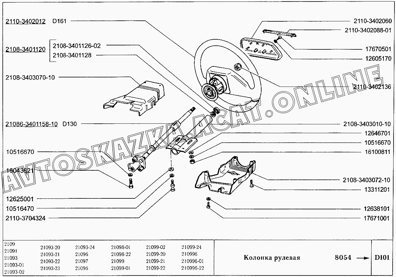 Колонка рулевая ВАЗ 21099 (21099, 21099-01, 21099-02, 21099-04, 210996, 210996-01 (карб.), 21099-20, 21099-21, 21099-22, 21099-23, 21099-24, 210996-22 (впрыск))