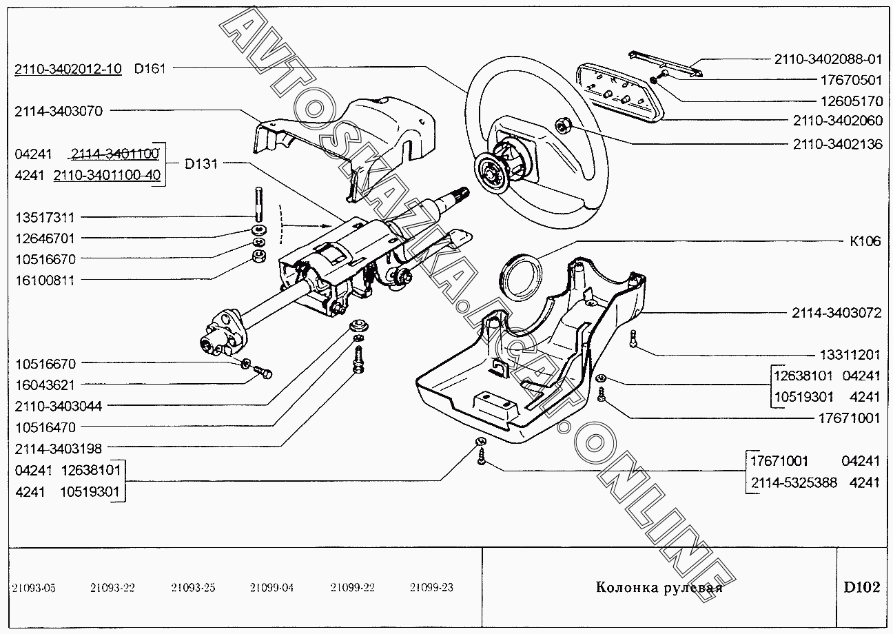 Колонка рулевая ВАЗ 21099 (21099, 21099-01, 21099-02, 21099-04, 210996, 210996-01 (карб.), 21099-20, 21099-21, 21099-22, 21099-23, 21099-24, 210996-22 (впрыск))