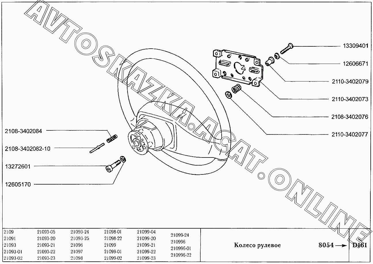 Колесо рулевое ВАЗ 21099 (21099, 21099-01, 21099-02, 21099-04, 210996, 210996-01 (карб.), 21099-20, 21099-21, 21099-22, 21099-23, 21099-24, 210996-22 (впрыск))