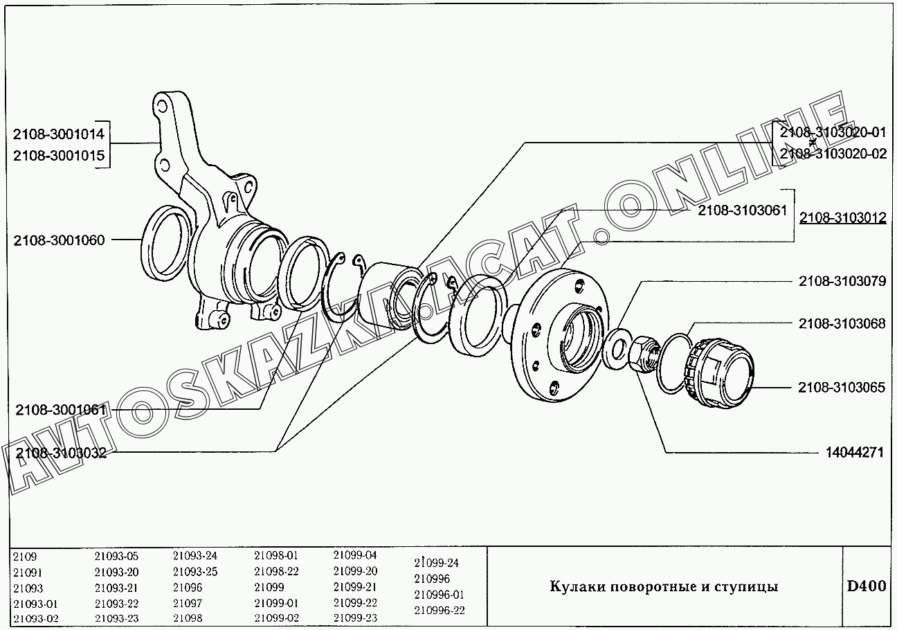 Кулаки поворотные и ступицы ВАЗ 21099 (21099, 21099-01, 21099-02, 21099-04, 210996, 210996-01 (карб.), 21099-20, 21099-21, 21099-22, 21099-23, 21099-24, 210996-22 (впрыск))
