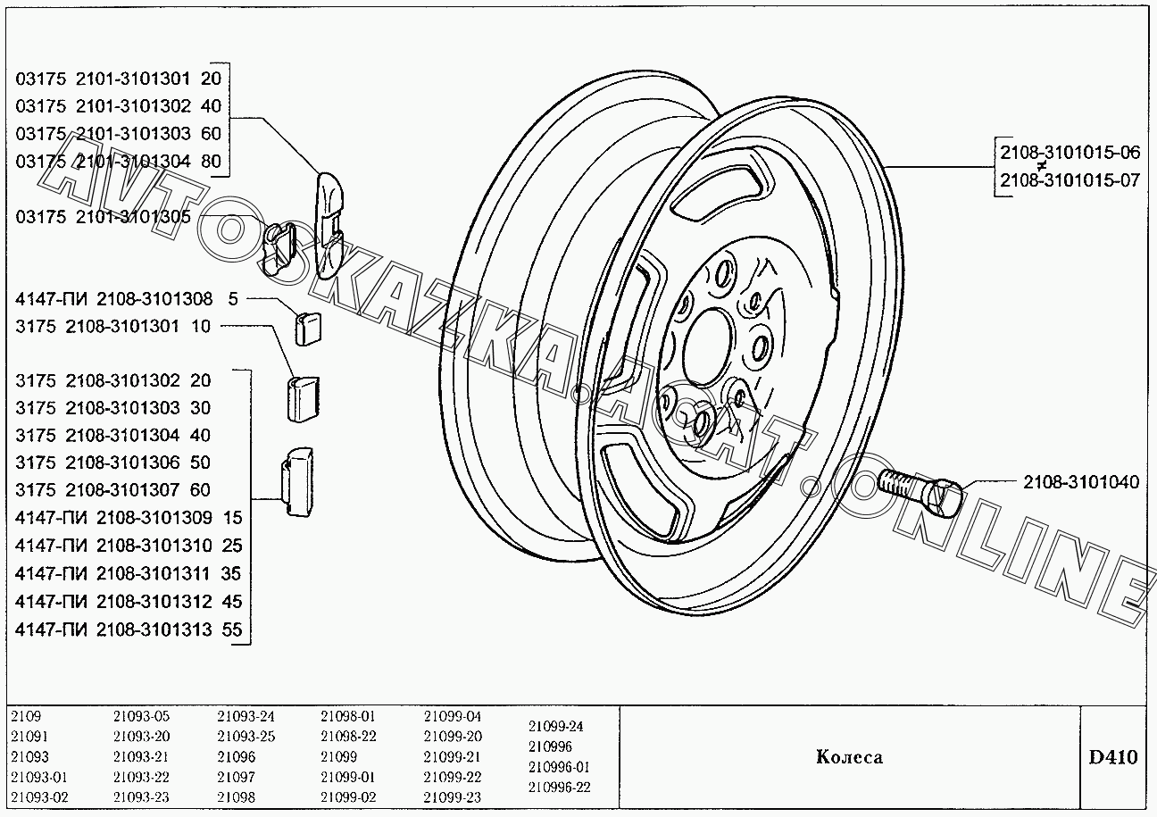 Колеса ВАЗ 21099 (21099, 21099-01, 21099-02, 21099-04, 210996, 210996-01 (карб.), 21099-20, 21099-21, 21099-22, 21099-23, 21099-24, 210996-22 (впрыск))
