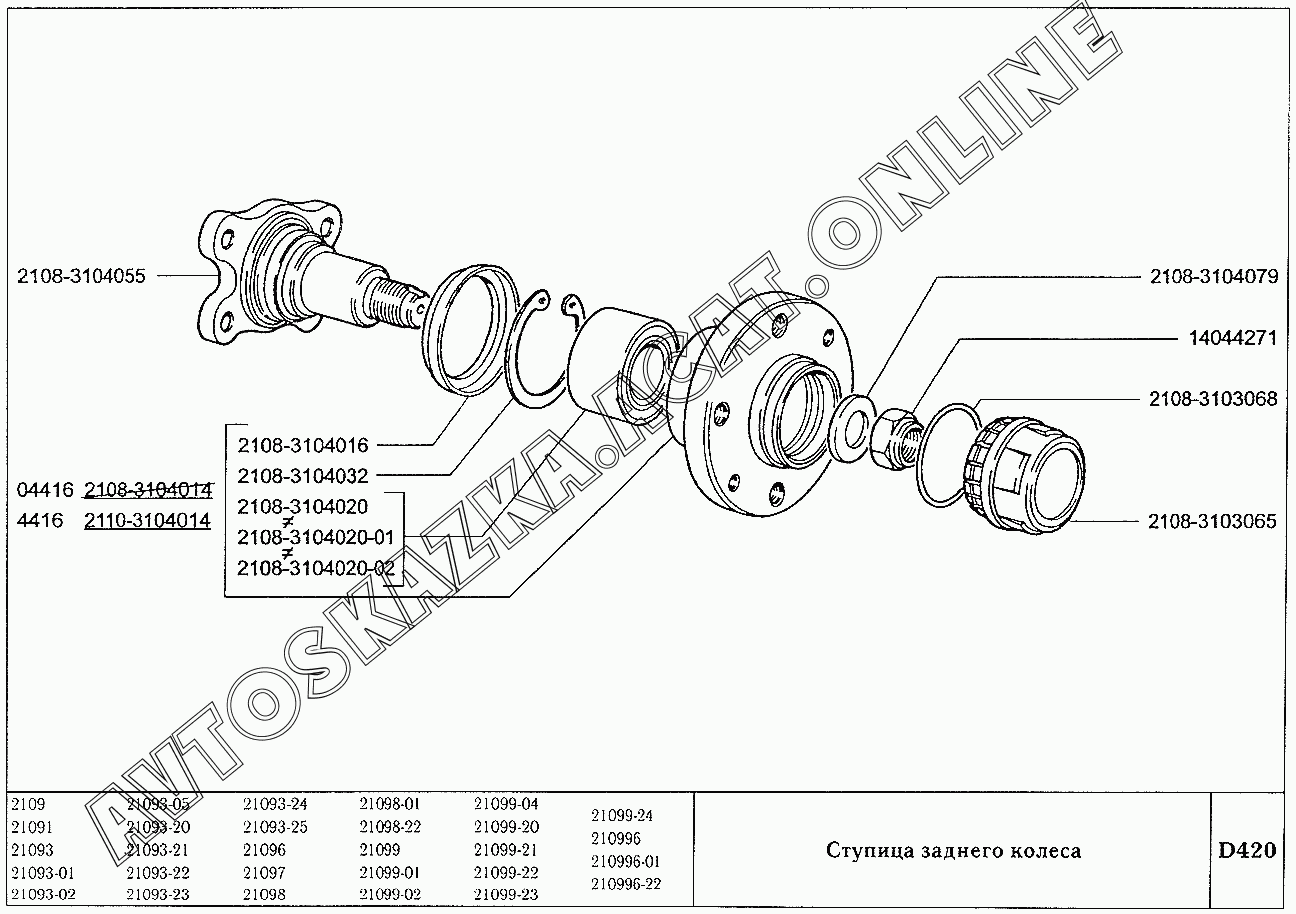 Ступица заднего колеса ВАЗ 21099 (21099, 21099-01, 21099-02, 21099-04, 210996, 210996-01 (карб.), 21099-20, 21099-21, 21099-22, 21099-23, 21099-24, 210996-22 (впрыск))