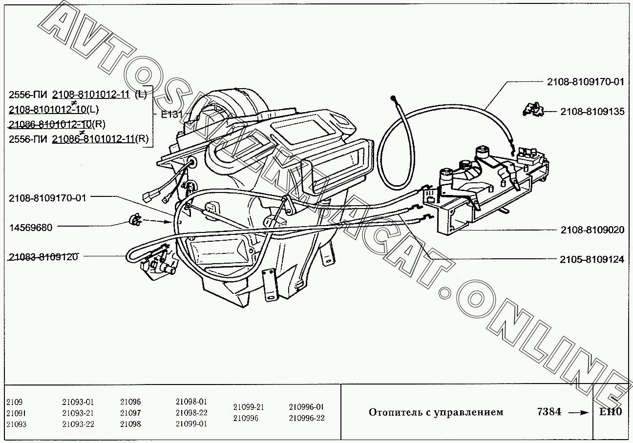 Отопитель с управлением ВАЗ 21099 (21099, 21099-01, 21099-02, 21099-04, 210996, 210996-01 (карб.), 21099-20, 21099-21, 21099-22, 21099-23, 21099-24, 210996-22 (впрыск))