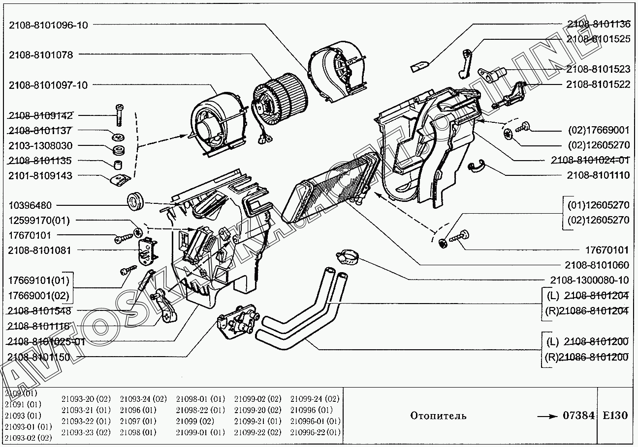 Отопитель ВАЗ 21099 (21099, 21099-01, 21099-02, 21099-04, 210996, 210996-01 (карб.), 21099-20, 21099-21, 21099-22, 21099-23, 21099-24, 210996-22 (впрыск))