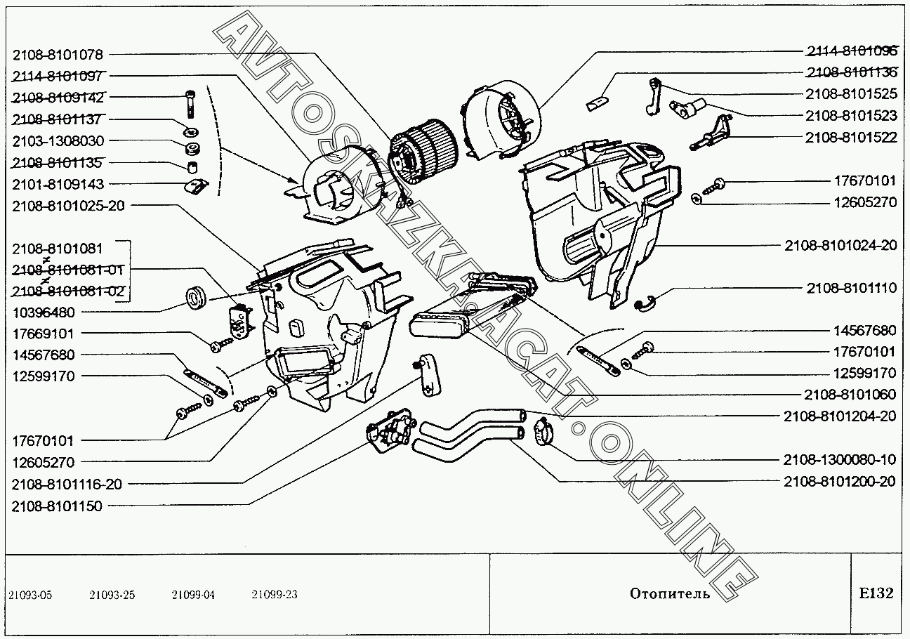 Отопитель ВАЗ 21099 (21099, 21099-01, 21099-02, 21099-04, 210996, 210996-01 (карб.), 21099-20, 21099-21, 21099-22, 21099-23, 21099-24, 210996-22 (впрыск))