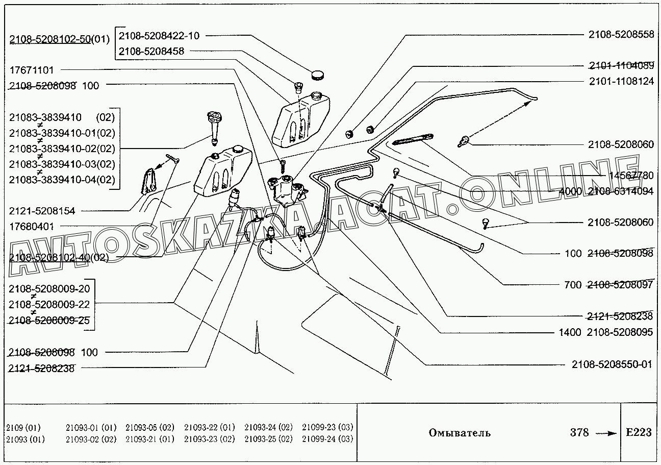 Омыватель ВАЗ 21099 (21099, 21099-01, 21099-02, 21099-04, 210996, 210996-01 (карб.), 21099-20, 21099-21, 21099-22, 21099-23, 21099-24, 210996-22 (впрыск))