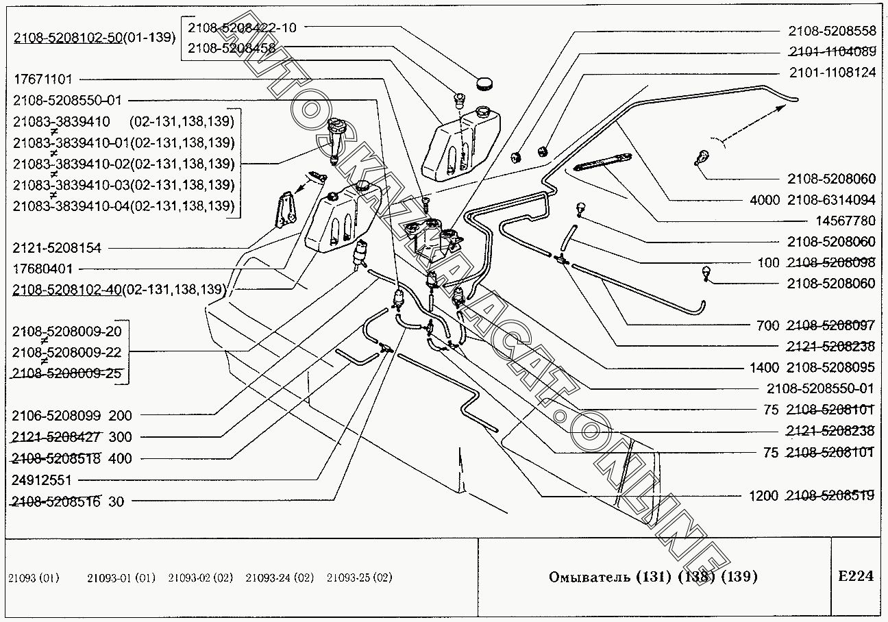 Омыватель (131,138,139) ВАЗ 21099 (21099, 21099-01, 21099-02, 21099-04, 210996, 210996-01 (карб.), 21099-20, 21099-21, 21099-22, 21099-23, 21099-24, 210996-22 (впрыск))