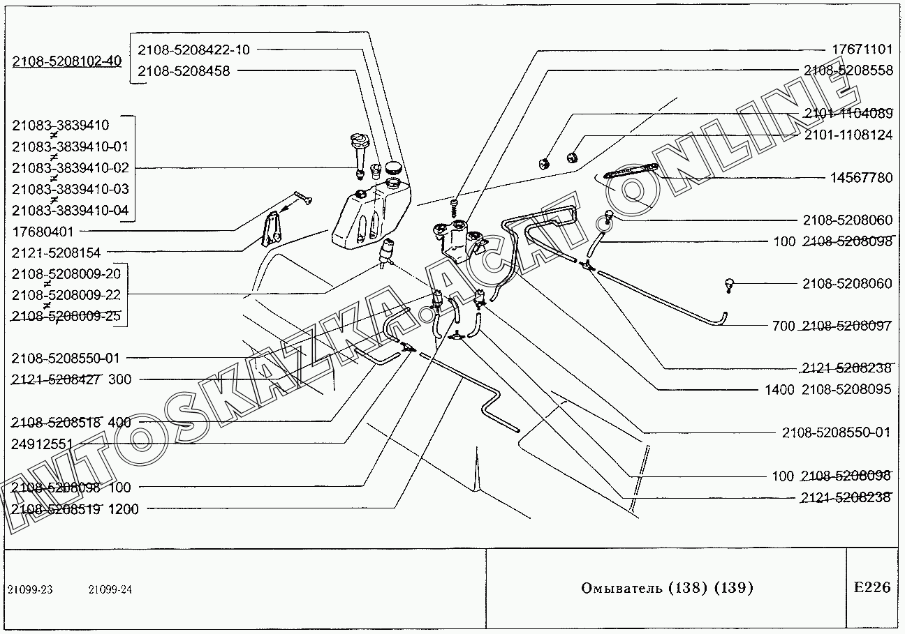 Омыватель (138,139) ВАЗ 21099 (21099, 21099-01, 21099-02, 21099-04, 210996, 210996-01 (карб.), 21099-20, 21099-21, 21099-22, 21099-23, 21099-24, 210996-22 (впрыск))