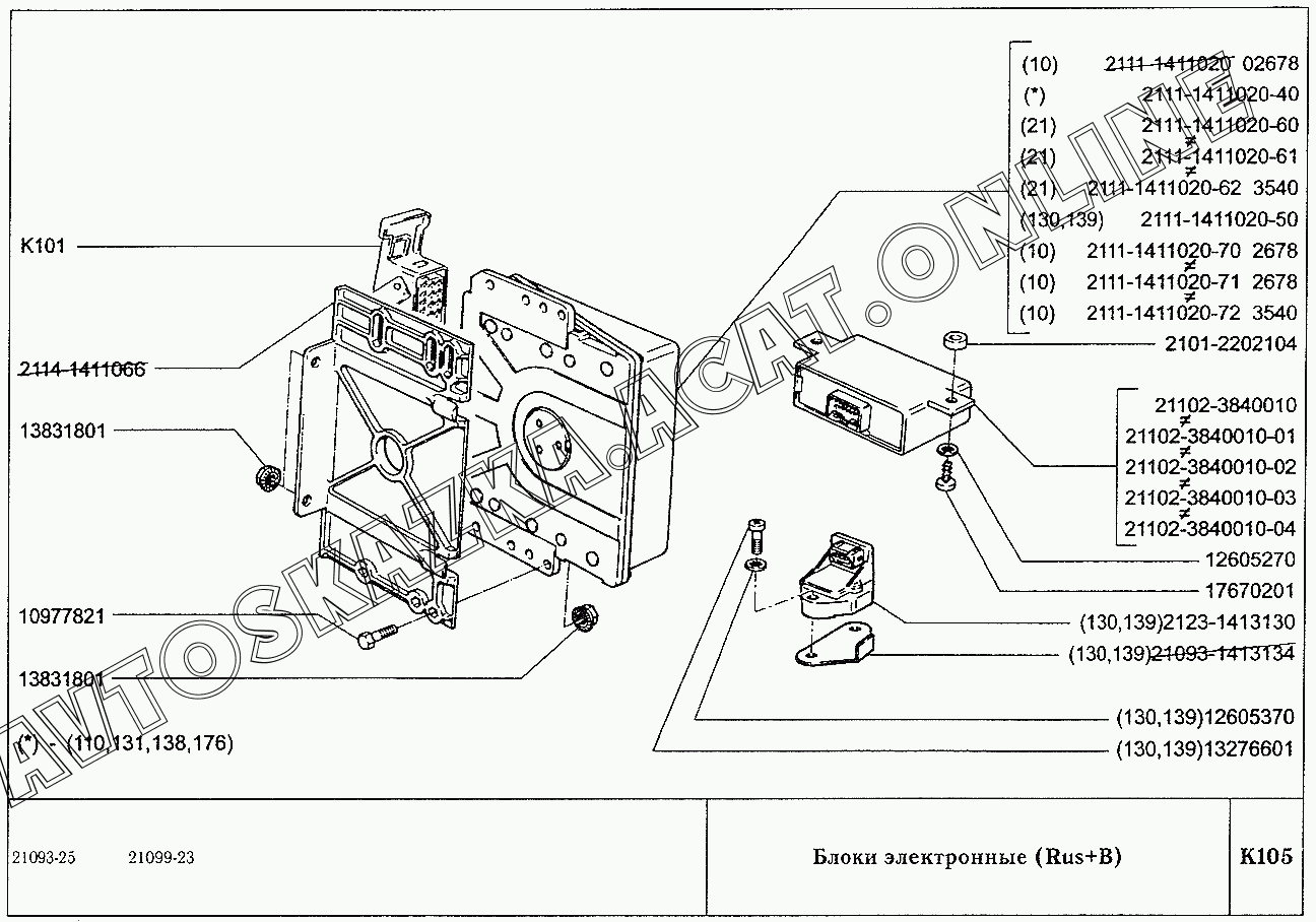 Блоки электронные (Rus+B) ВАЗ 21099 (21099, 21099-01, 21099-02, 21099-04, 210996, 210996-01 (карб.), 21099-20, 21099-21, 21099-22, 21099-23, 21099-24, 210996-22 (впрыск))