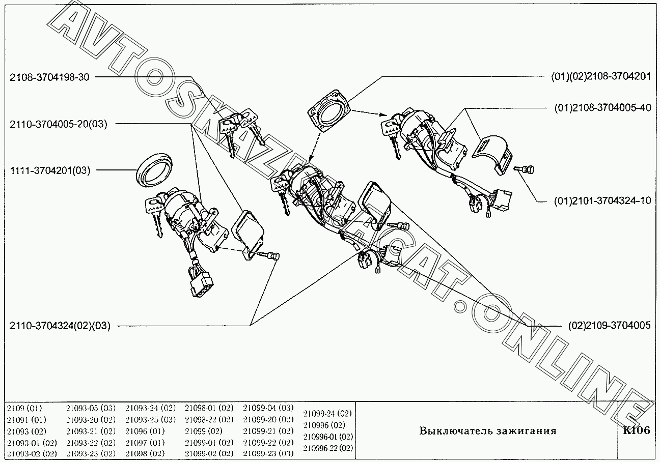 Выключатель зажигания ВАЗ 21099 (21099, 21099-01, 21099-02, 21099-04, 210996, 210996-01 (карб.), 21099-20, 21099-21, 21099-22, 21099-23, 21099-24, 210996-22 (впрыск))