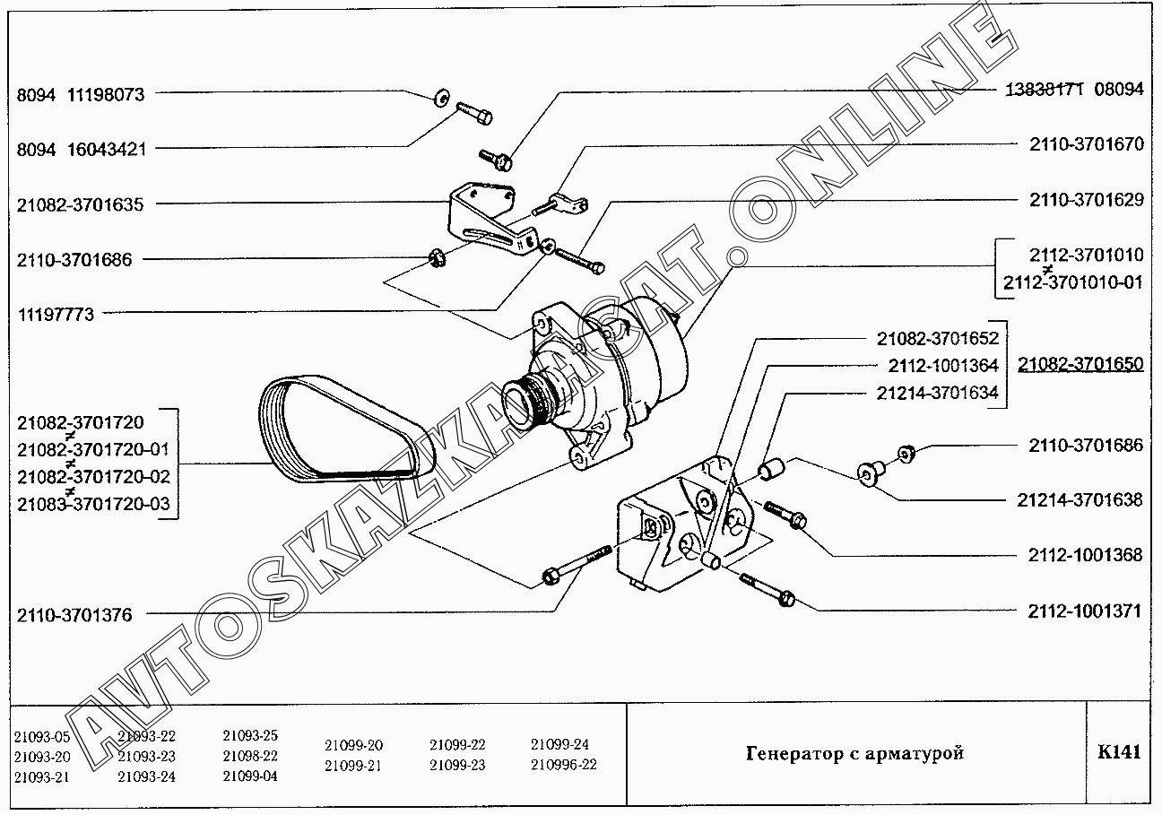 Генератор с арматурой ВАЗ 21099 (21099, 21099-01, 21099-02, 21099-04, 210996, 210996-01 (карб.), 21099-20, 21099-21, 21099-22, 21099-23, 21099-24, 210996-22 (впрыск))