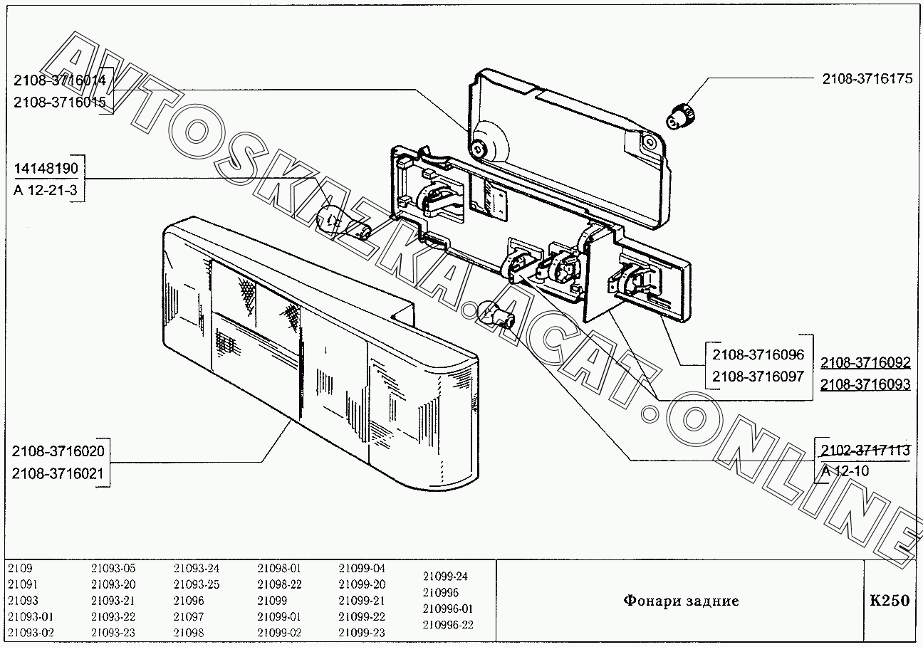 Фонари задние ВАЗ 21099 (21099, 21099-01, 21099-02, 21099-04, 210996, 210996-01 (карб.), 21099-20, 21099-21, 21099-22, 21099-23, 21099-24, 210996-22 (впрыск))