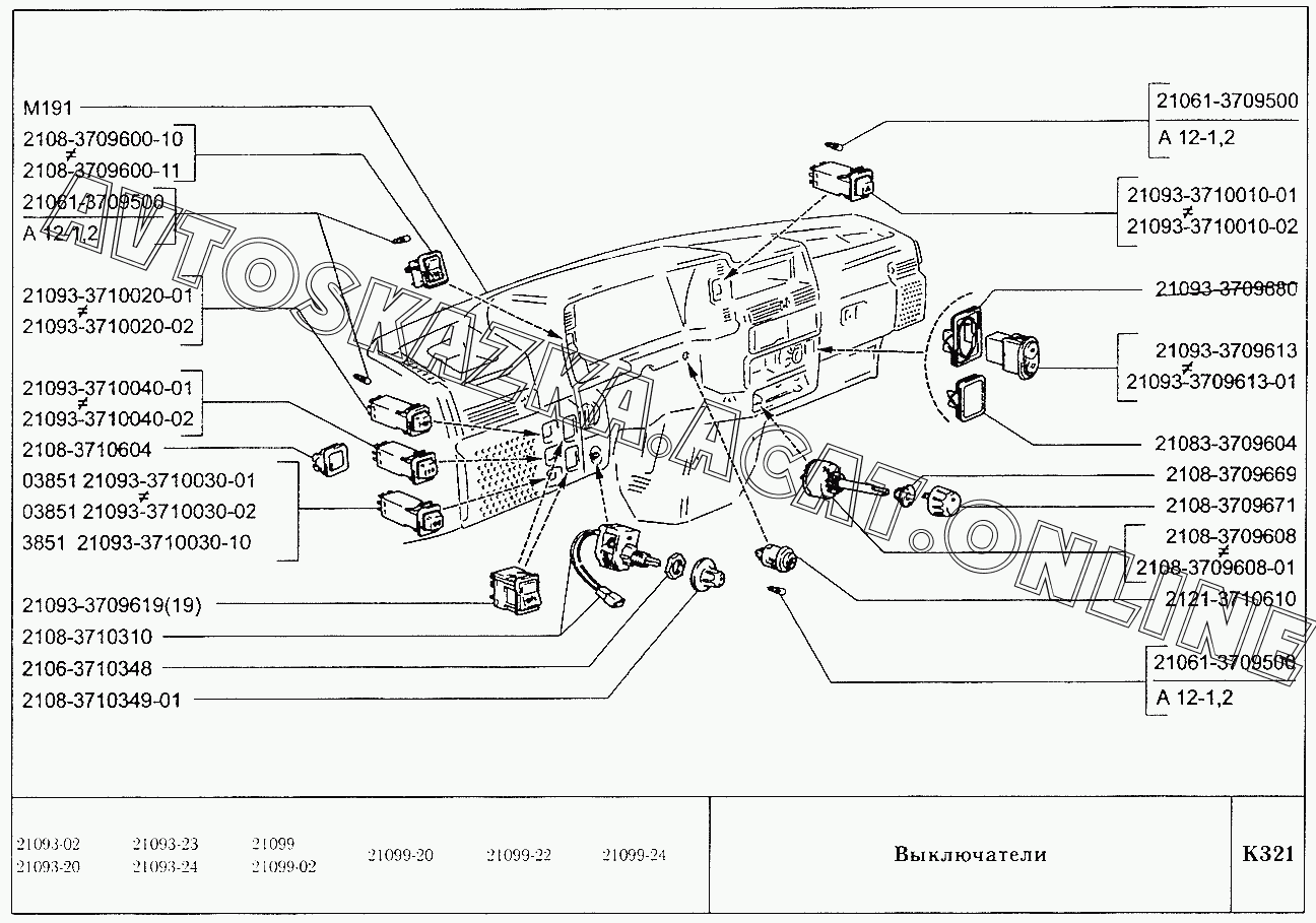 Выключатели ВАЗ 21099 (21099, 21099-01, 21099-02, 21099-04, 210996, 210996-01 (карб.), 21099-20, 21099-21, 21099-22, 21099-23, 21099-24, 210996-22 (впрыск))