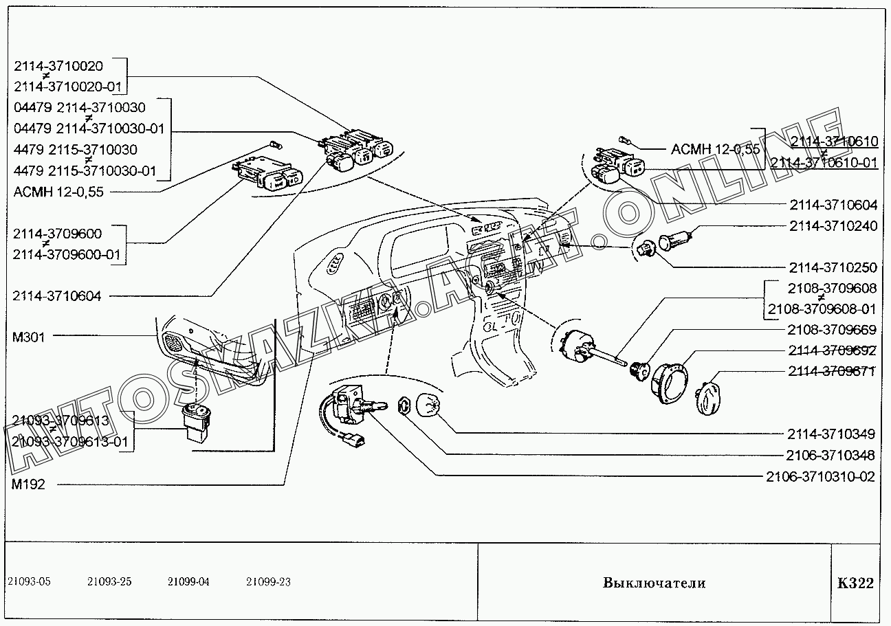 Выключатели ВАЗ 21099 (21099, 21099-01, 21099-02, 21099-04, 210996, 210996-01 (карб.), 21099-20, 21099-21, 21099-22, 21099-23, 21099-24, 210996-22 (впрыск))