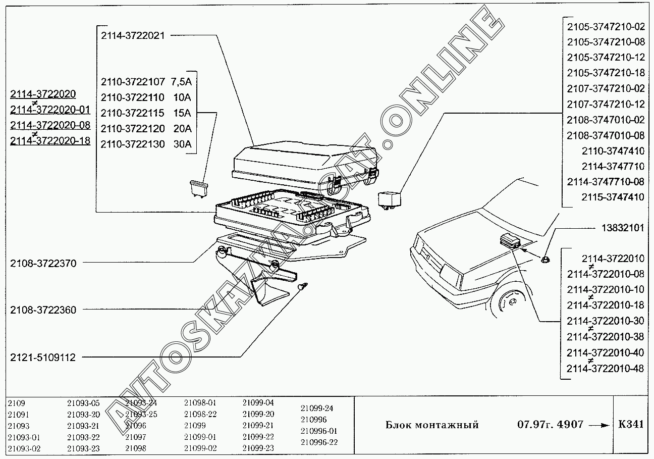 Блок монтажный ВАЗ 21099 (21099, 21099-01, 21099-02, 21099-04, 210996, 210996-01 (карб.), 21099-20, 21099-21, 21099-22, 21099-23, 21099-24, 210996-22 (впрыск))