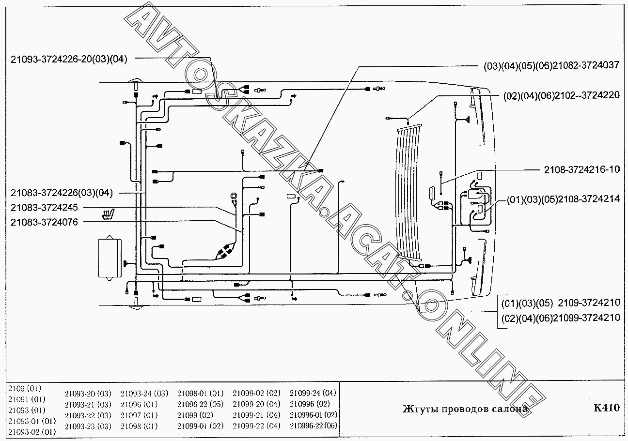 Жгуты проводов салона ВАЗ 21099 (21099, 21099-01, 21099-02, 21099-04, 210996, 210996-01 (карб.), 21099-20, 21099-21, 21099-22, 21099-23, 21099-24, 210996-22 (впрыск))