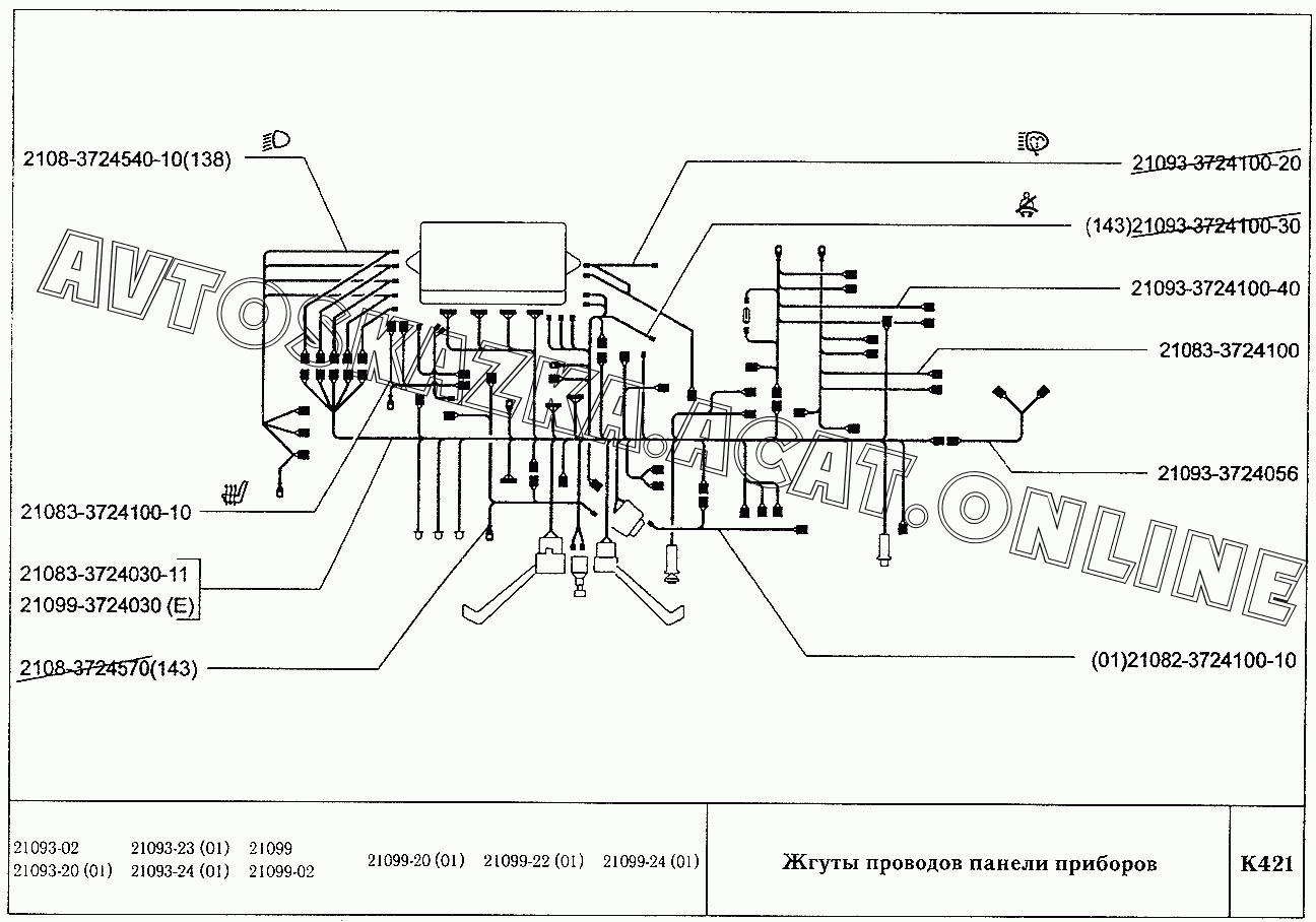 Жгуты проводов панели приборов ВАЗ 21099 (21099, 21099-01, 21099-02, 21099-04, 210996, 210996-01 (карб.), 21099-20, 21099-21, 21099-22, 21099-23, 21099-24, 210996-22 (впрыск))