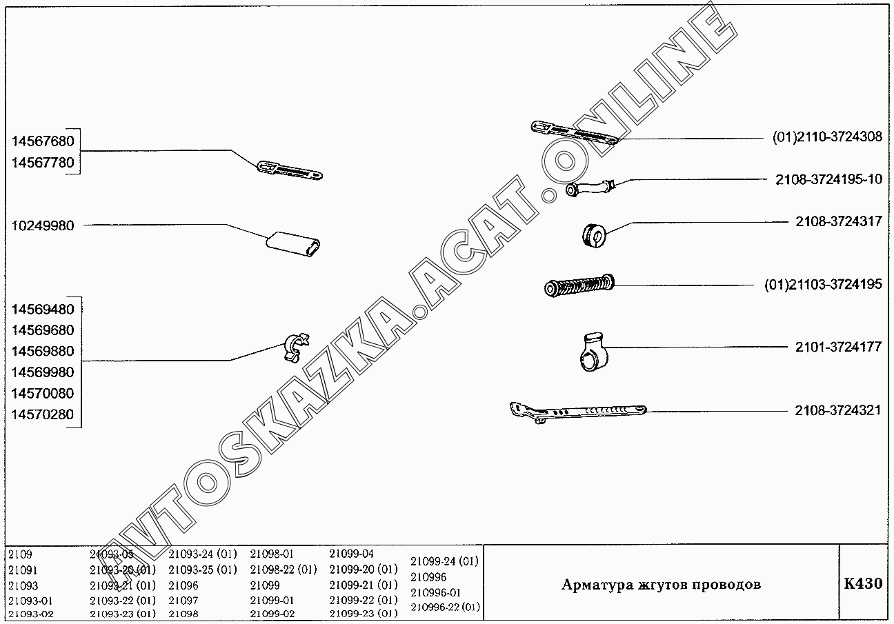 Арматура жгутов проводов ВАЗ 21099 (21099, 21099-01, 21099-02, 21099-04, 210996, 210996-01 (карб.), 21099-20, 21099-21, 21099-22, 21099-23, 21099-24, 210996-22 (впрыск))