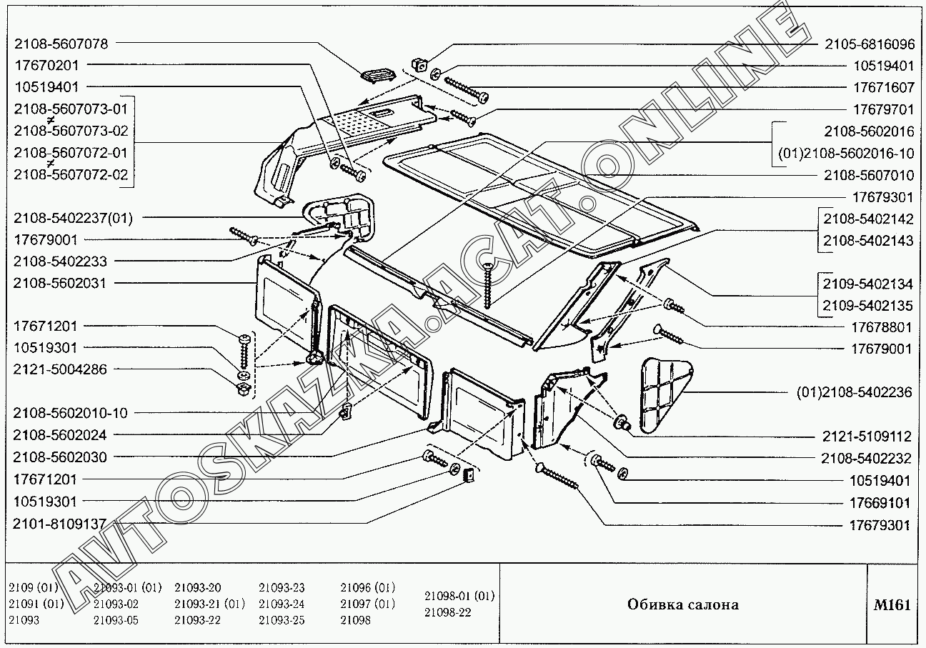 Обивка салона ВАЗ 21099 (21099, 21099-01, 21099-02, 21099-04, 210996, 210996-01 (карб.), 21099-20, 21099-21, 21099-22, 21099-23, 21099-24, 210996-22 (впрыск))