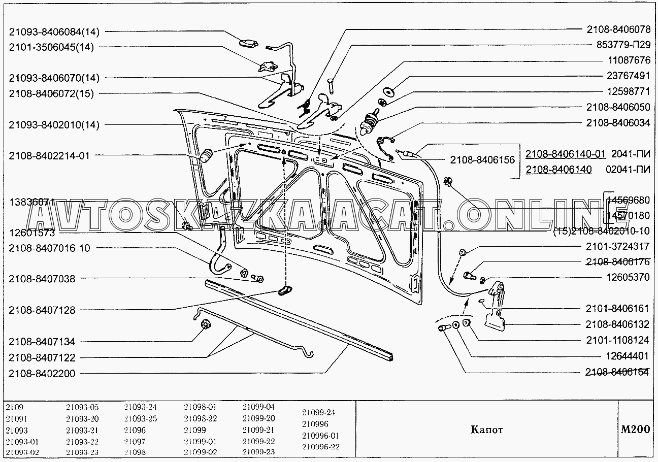 Капот ВАЗ 21099 (21099, 21099-01, 21099-02, 21099-04, 210996, 210996-01 (карб.), 21099-20, 21099-21, 21099-22, 21099-23, 21099-24, 210996-22 (впрыск))