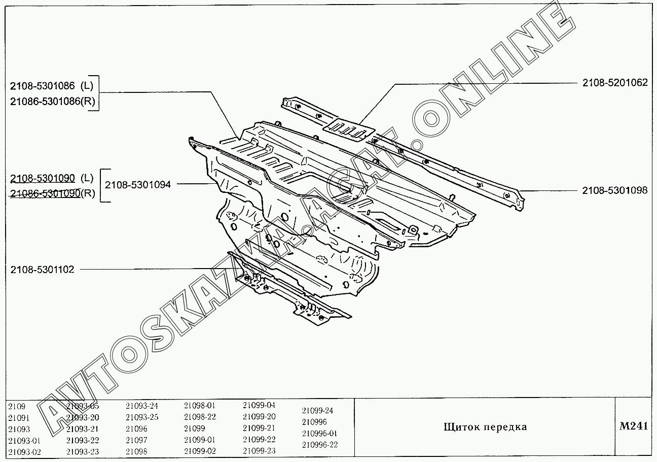 Щиток передка ВАЗ 21099 (21099, 21099-01, 21099-02, 21099-04, 210996, 210996-01 (карб.), 21099-20, 21099-21, 21099-22, 21099-23, 21099-24, 210996-22 (впрыск))