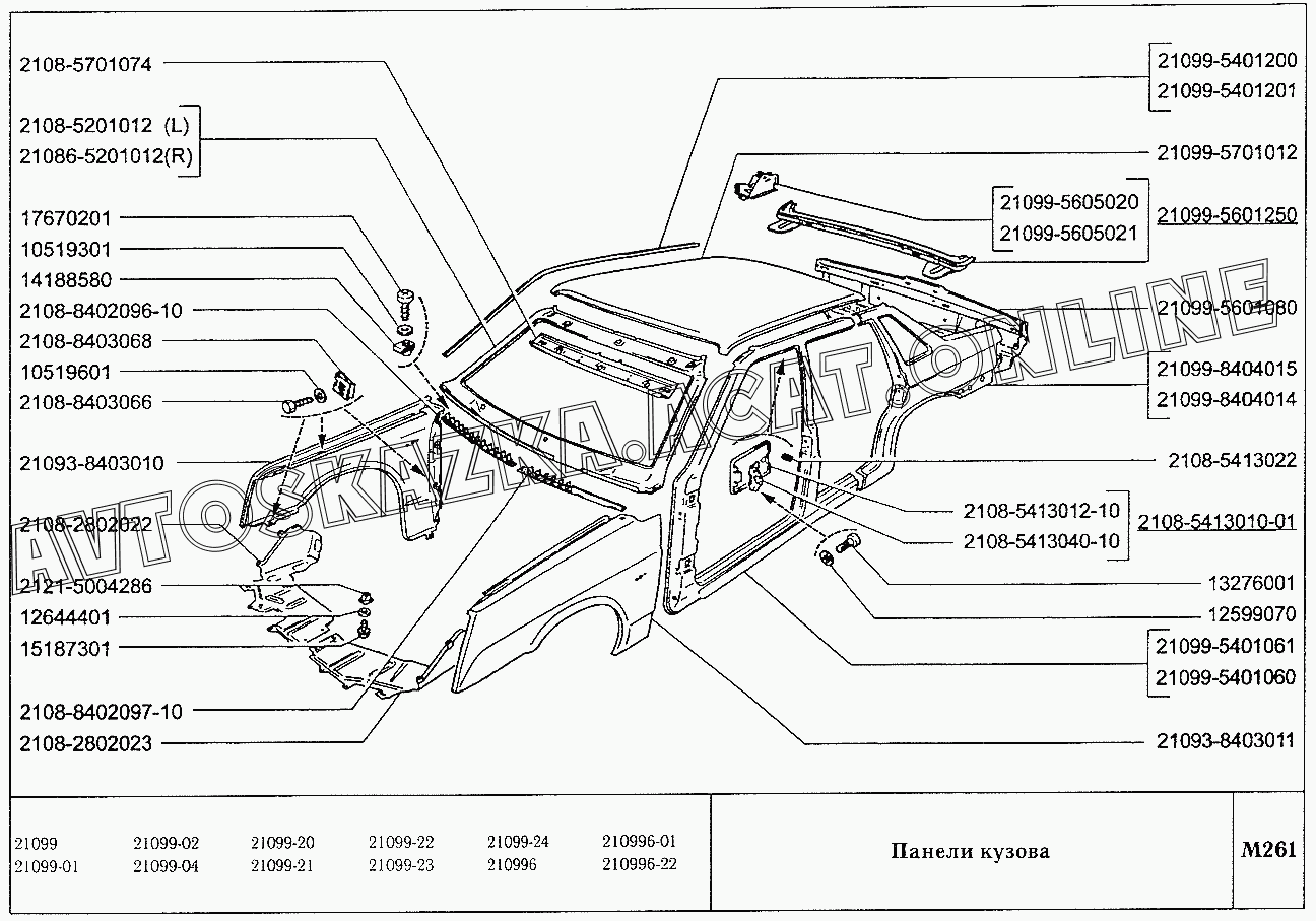 Панели кузова ВАЗ 21099 (21099, 21099-01, 21099-02, 21099-04, 210996, 210996-01 (карб.), 21099-20, 21099-21, 21099-22, 21099-23, 21099-24, 210996-22 (впрыск))