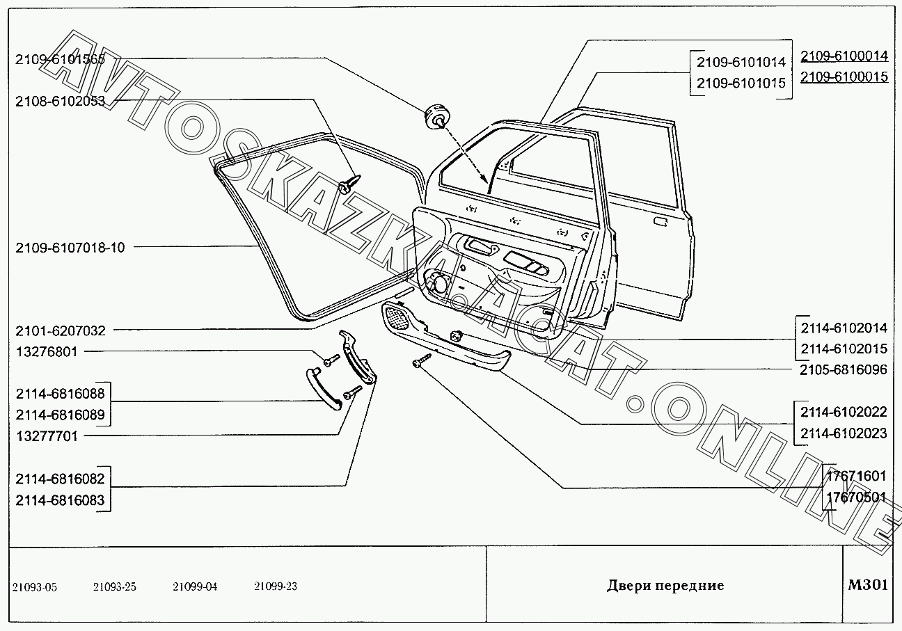 Двери передние ВАЗ 21099 (21099, 21099-01, 21099-02, 21099-04, 210996, 210996-01 (карб.), 21099-20, 21099-21, 21099-22, 21099-23, 21099-24, 210996-22 (впрыск))